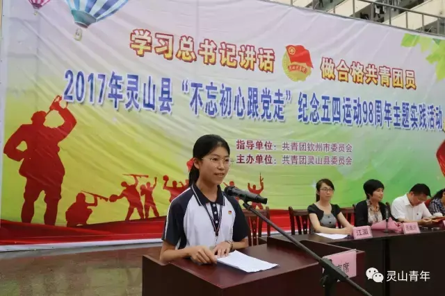 5月2日,灵山县“不忘初心跟党走”纪念五四运动98周年主题实践活动在灵城三中举行。通过活动,让团员感受到作为共青团员的先进性,在学习生活中既要不断提升自己,还要团结带领身边的青年共同刻苦学习、努力工作,为实现“两个一百年”奋斗目标,为实现中华民族伟大复兴的中国梦贡献青春的智慧和力量。
