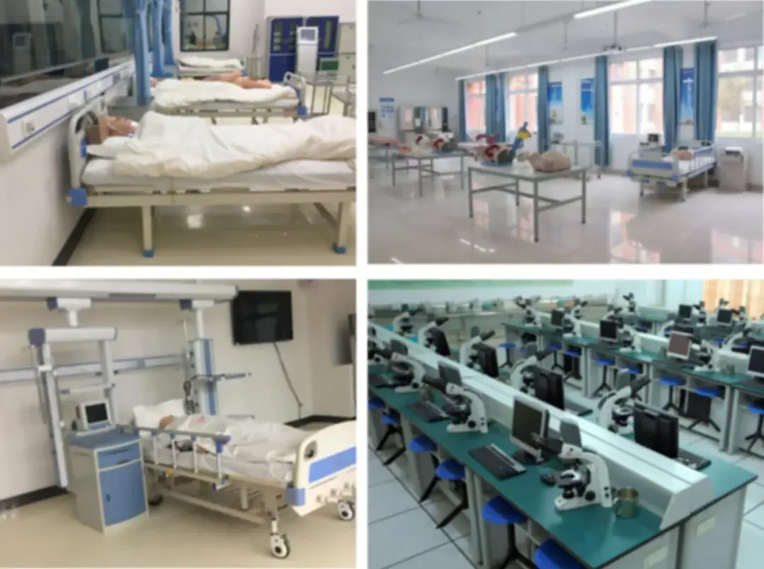 学院高标准、大投入,在校内建有完全体现现代护理理念和高科技、全实境的最新实训中心,建筑面积2000余平方米,护理实训中心目前建设有机能实训室、理化实训室、解剖标本陈列室、护理技能实训室、妇产护理实训室、儿科护理实训室、健康评估实训室、康复实训室、模拟手术室、模拟病房、急危重症实训室、针灸推拿实训室、物理治疗实训室、数码互动实训室等,充分满足教学计划课程对应的实训需求。情景模拟病房、交互式模拟病人系统等设施设备齐全、功能先进、操作实用、贴近临床,拉近实训室与临床的距离。
