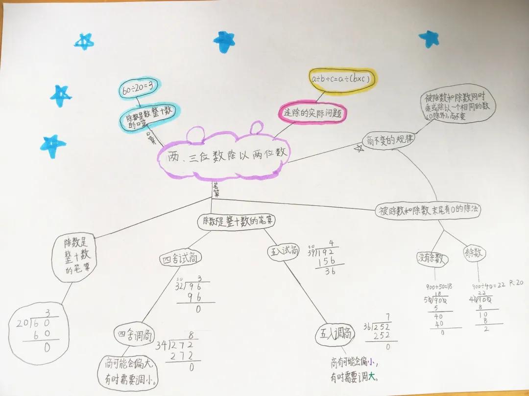 如融合小学的数学作业除了常规作业之外,会结合课程内容设计丰富的任务纸,引导学生小组合作探究。同时也会结合UOI设计整合作业和创新型作业,如G1在学习0-10的数字时,会整合UOI“家庭”主题,引导学生设计一个Numbers in my family的翻翻书;G3在学习克的知识时候,会整合UOI“健康”主题,设计营养金字塔。G5的学生结合学过的知识点,独立创作“数学绘本”。在复习的时候老师们也会引导学生用思维导图的形式梳理知识点。
