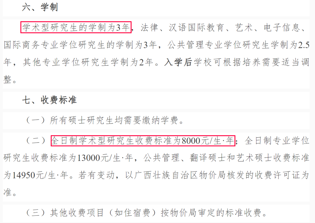 根据南宁师范大学2023考研的招生简章,所有的学术型硕士学制都是3年,学费是8千/年,三年学费一共是2.4万元。