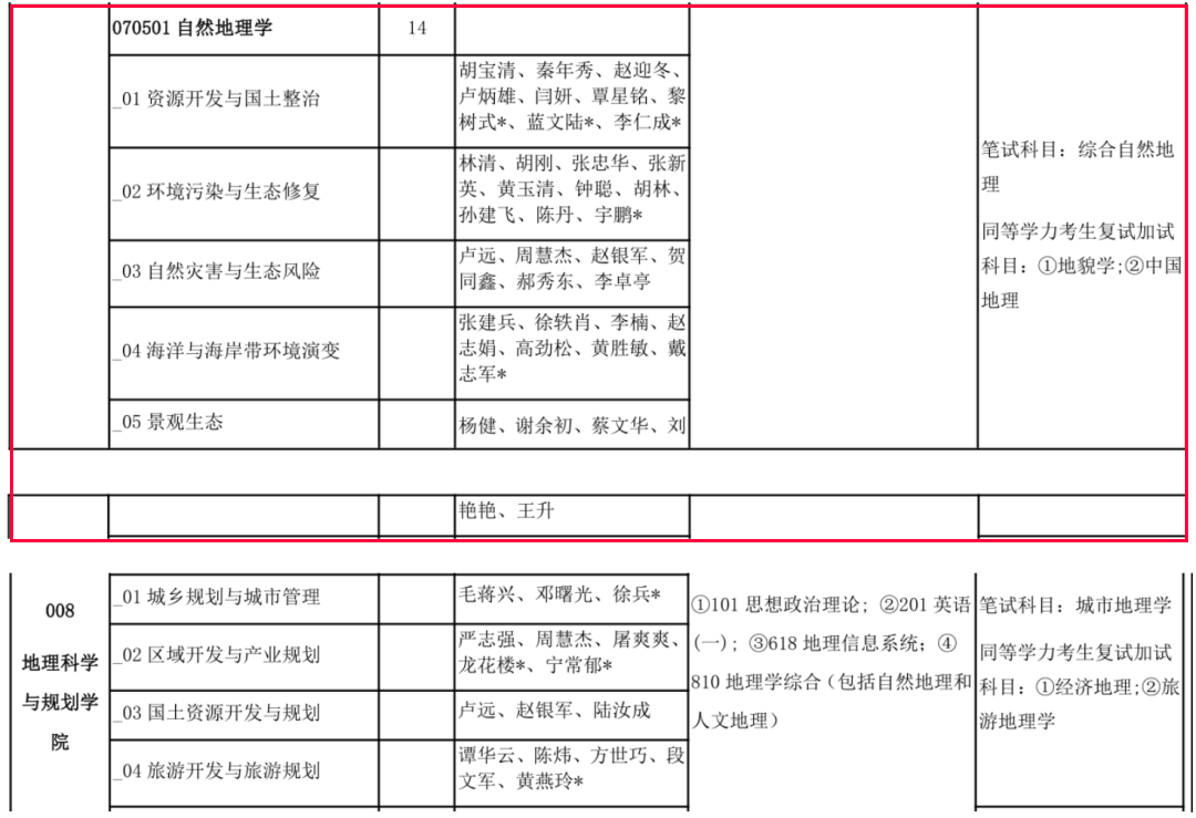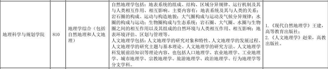 初试科目:101思想政治理论;201英语(一);618地理信息系统;810地理学综合(包括自然地理和人文地理)