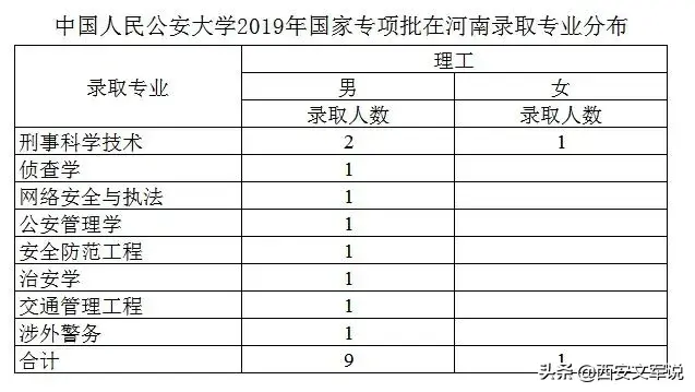 中国人民公安大学2019年在河南共录取13个专业