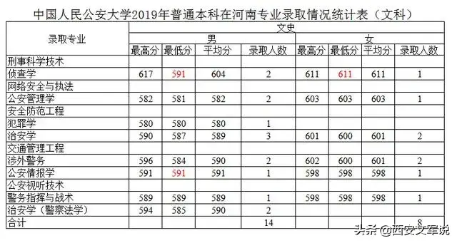 文理科,录取专业最低分的专业都是公安管理学