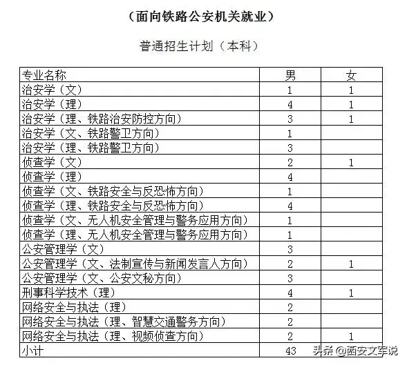 按就业方向分,面向铁路公安机关就业方向80人,面向地方公安机关就业方向20人