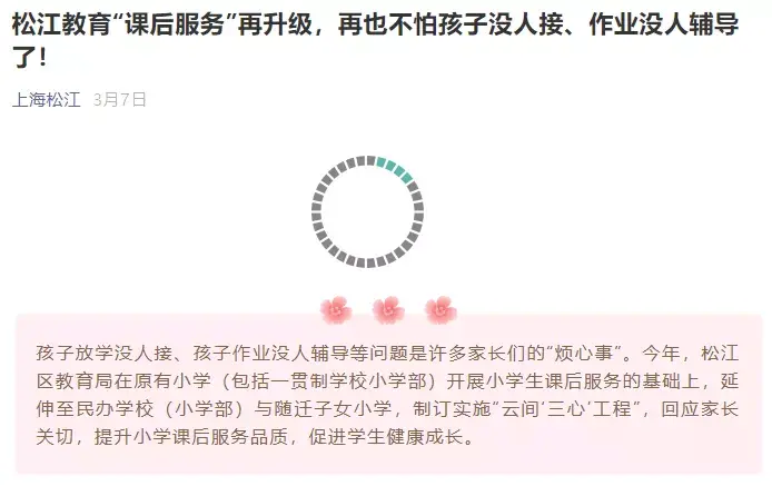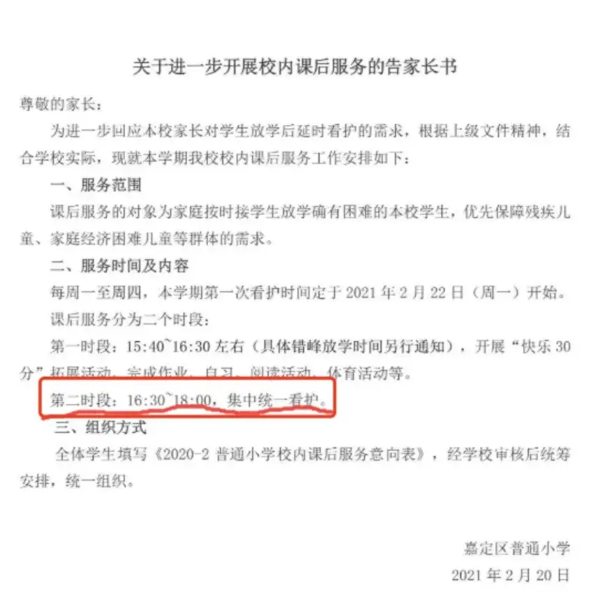 嘉定已有部分公办小学开始实行课后服务了!晚托班从原来的17点左右,延长至18点。