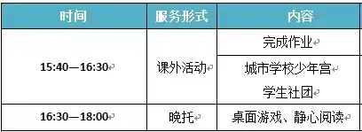3:30“班级看护”:主要是针对2-5年级全体学生,以班级为单位,指导学生在校完成作业,进行作业辅导等方面的活动。