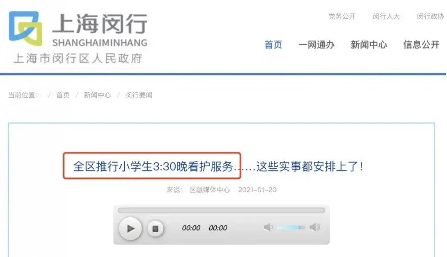 考虑学校实际和学生家长的切身需要,闵行2021年拟在全区推行小学生“3:30”+“晚看护”服务。