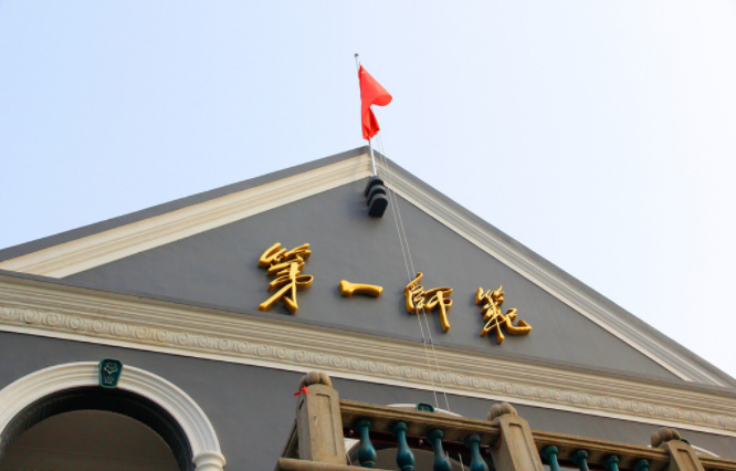 毛泽东的母校湖南省立第一师范学校座落在长沙城南妙高峰下,西临滔滔湘水。一九一三年,毛泽东以第一名的成绩考入了这所湖湘名校。