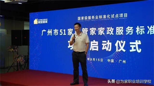 2021年9月15日下午,51家庭管家国家级家政服务业标准化试点项目启动仪式在51家庭管家广州总部隆重举行。广东省市场监督管理局、广东省商务厅、广东省就业服务管理局、广州市商务局、广州市人力资源和社会保障局、海珠区人力资源和社会保障局、海珠区科工商信局、广东省家庭服务业协会、广州市家庭服务联合会、广州为想互联网科技有限公司(51家庭管家)、为家职业培训学校等相关单位领导出席了本次活动。