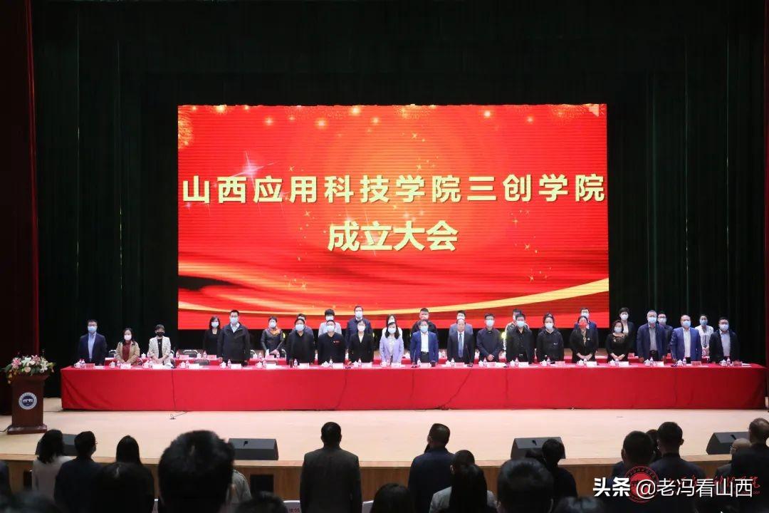 △在庄严的国歌声中,山西应用科技学院三创学校成立大会拉开帷幕。