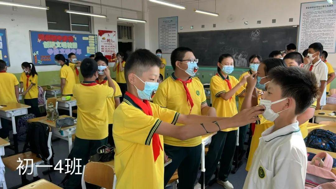 新学期打招呼的方式很特别,大家互贴笑脸。趣味口罩笑脸寓意着,新冠疫情下师生坚忍三年,疫情或还将伴随学习生活一段时间。学生校门口更换笑脸口罩,怀着开心的心情为学年“开新”。同时希望我们新学期师生都能笑口常开。