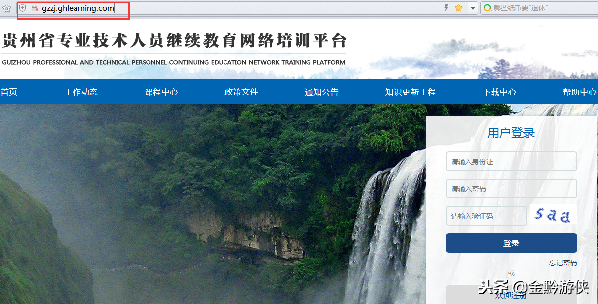 打开浏览器,在地址栏输入贵州省专业技术人员继续教育网络培训平台网址(http://gzzj.ghlearning.com/)进入平台。