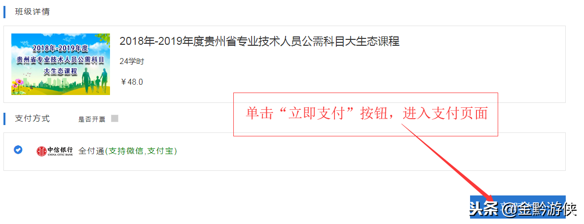 在弹出窗口中单击“立即支付”按钮,进入下一步。