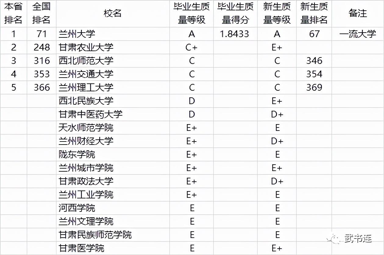 2、2021年甘肃省17所大学本科毕业生质量排行榜