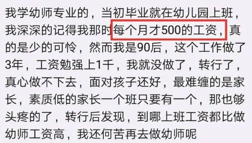 我们常常听说老师的工资并不低,但一位幼儿园老师,将自己的真实工资发到了网络上面。本想得到一些安慰,却被家长说成贪得无厌。