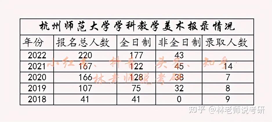 1992年,杭州师范大学成立美术系。杭州教育学院美术系、杭州工艺美术学校先后并入,2007年升格为杭州师范大学美术学院。学院拥有美术学、设计学一级学科硕士点和艺术硕士专业学位点2个领域(美术、艺术设计),同时培养教育硕士学科教学(美术)方向的研究生;2011年美术学、设计学被列为浙江省重点建设学科。现有美术学(师范)、绘画、书法学、视觉传达设计、公共艺术和环境设计等6个专业,其中公共艺术专业为国家一流专业,美术学(师范)为省一流专业。各专业本科投档线持续位列全省前二,研究生报考人数不断上升,第一志愿录取率100%。毕业生主要就业方向为中小学、美术馆、设计公司、广告公司、艺术教育机构等,部分考入中国美术学院、英国曼彻斯特大学等知名高校深造,毕业生就业率年均94%以上。2021考研学科教学美术计划招生15人,复试分数线337分(A区国家线),不接收调剂。