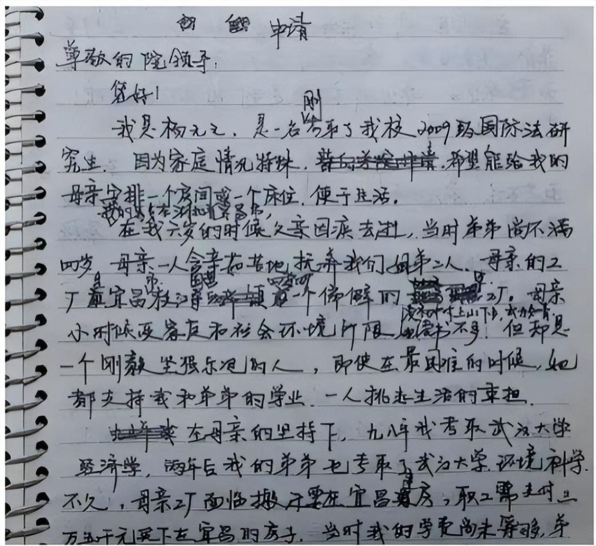 在查明杨元元和其母亲的情况后,出于人道主义的学校决定让杨元元写一份申请书向学校申请补助。