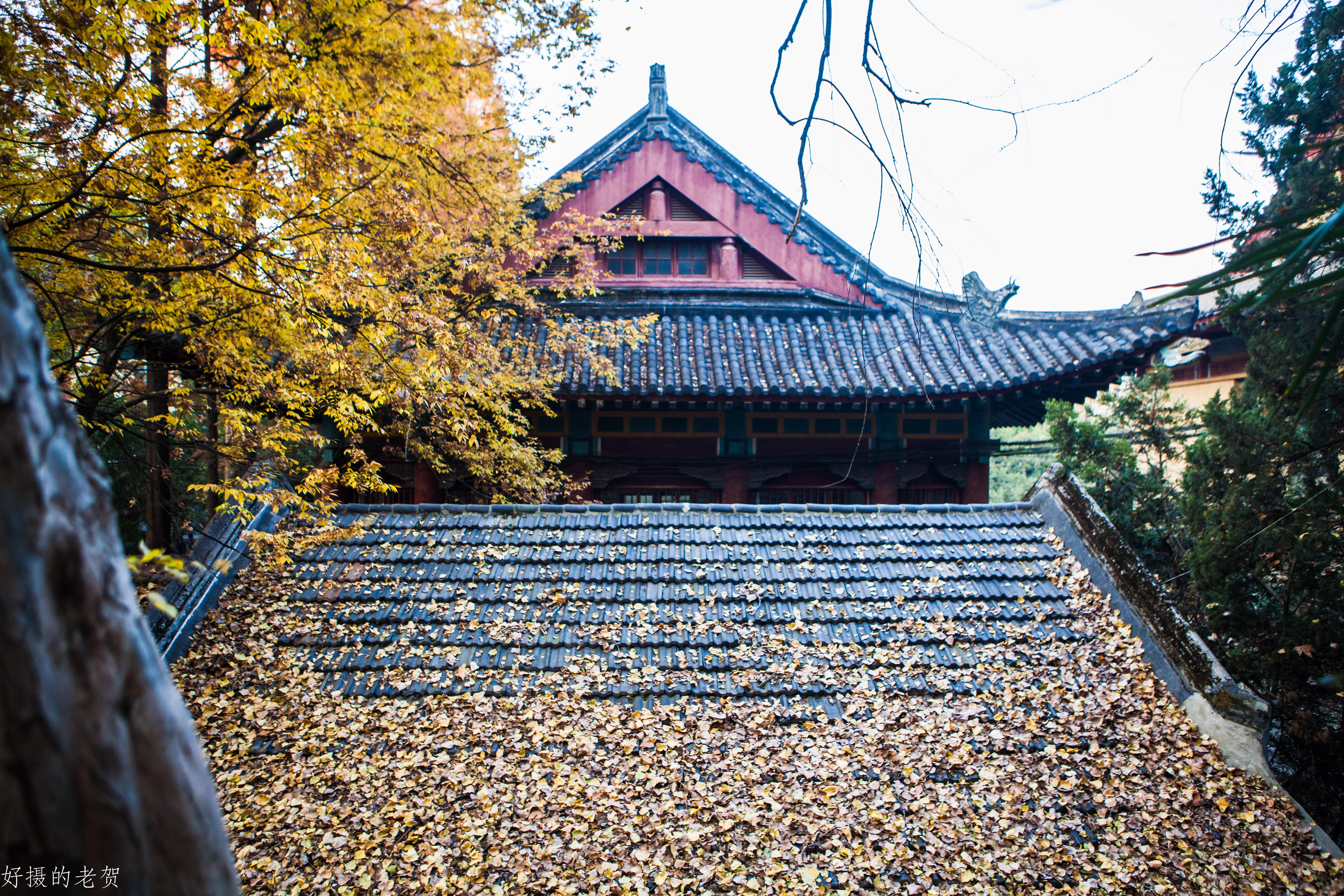 再走几步,一条道路向右下方叉出去。在南师大,你会一直有这样在山丘上上下下转来转去的感觉。道边,枯黄色的叶子洒在深灰色的砖瓦之上,色调相当的和谐。