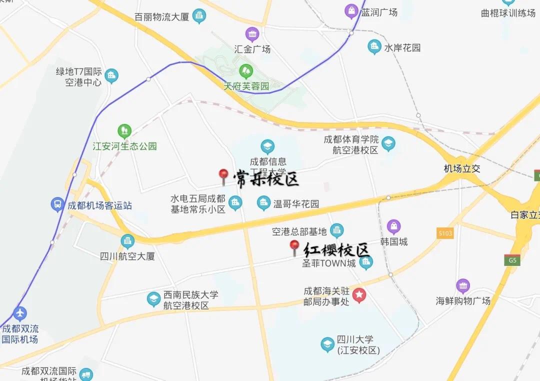 学校坐落在四川省成都市双流区国家级临空经济示范区西航港街道,距双流国际机场不足2公里,毗邻四川大学、成都信息工程大学、西南民族大学。