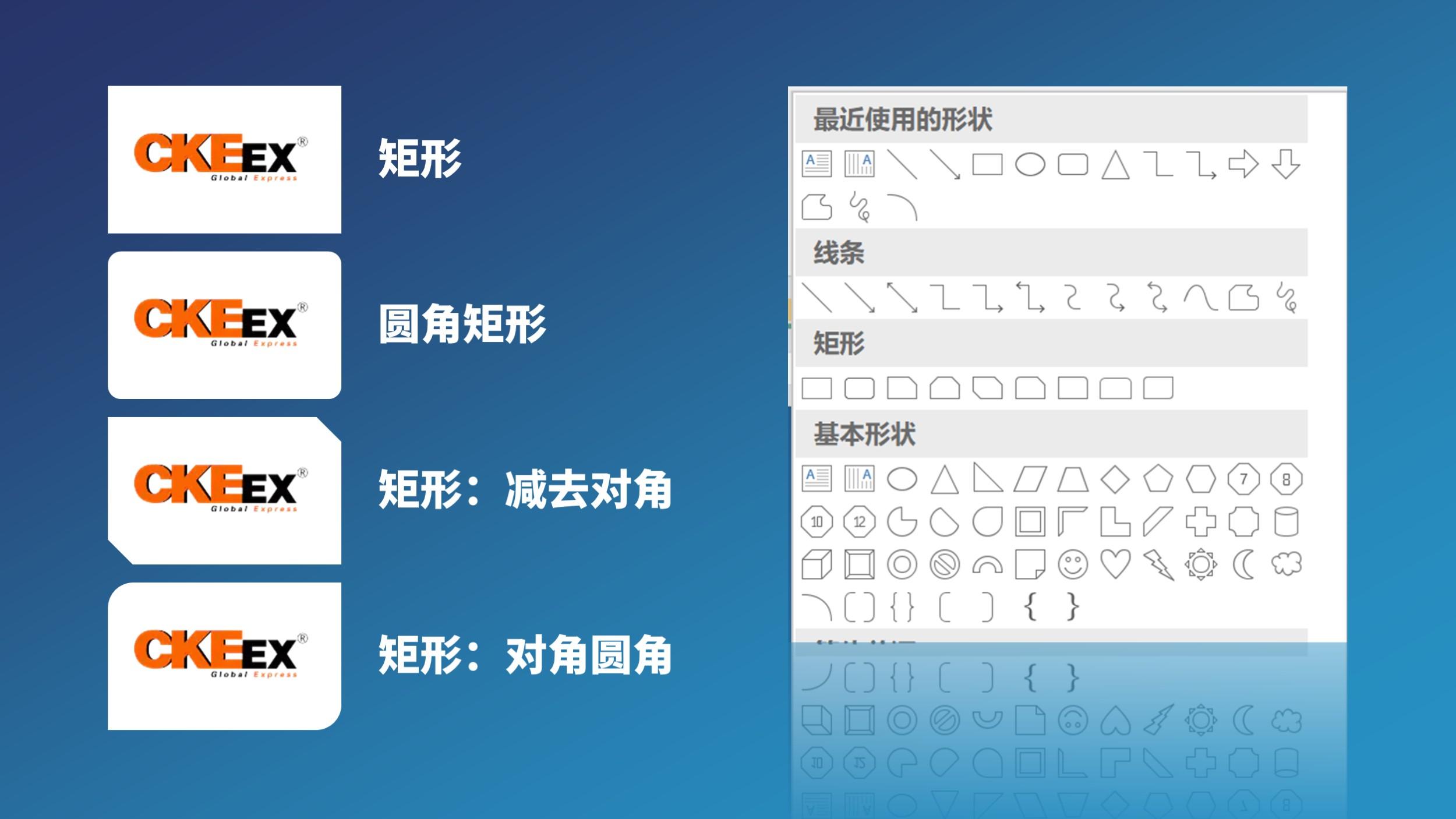 让Logo从视觉上看上去统一,直接加一个边框就可以了!这样我们的视觉重心就分流一部分到整齐的圆角矩形上。当然,边框还可以有很多种!不知道大家有没有留意过,PPT中还自带了很多自选图形。比如各种减去对角的矩形、圆顶角矩形。直接替换,就又多了几种变化手段。