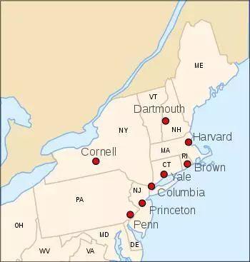 美国东北部新英格兰地区和大西洋沿岸地区聚集了非常多的优质高等教育资源,几乎四分之一美国排名前200大学都在这一区域。它们如同仲夏夜的繁星,错落有致。其中最亮的8颗星如同北斗七星和北极星一般横跨在大西洋沿岸的八座城市当中,它们就是美国大学中最知名的常青藤盟校。