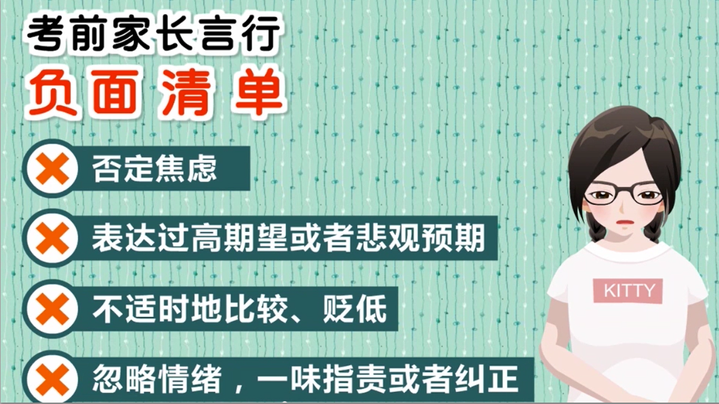 有的孩子临近考试就陷入考前焦虑,而有的家长考前也喜欢善意地关心孩子。必要的提醒会让孩子有所警醒、提高复习效率,而有些嘱咐则是“增压毒药”,家长们千万要注意表达方式。