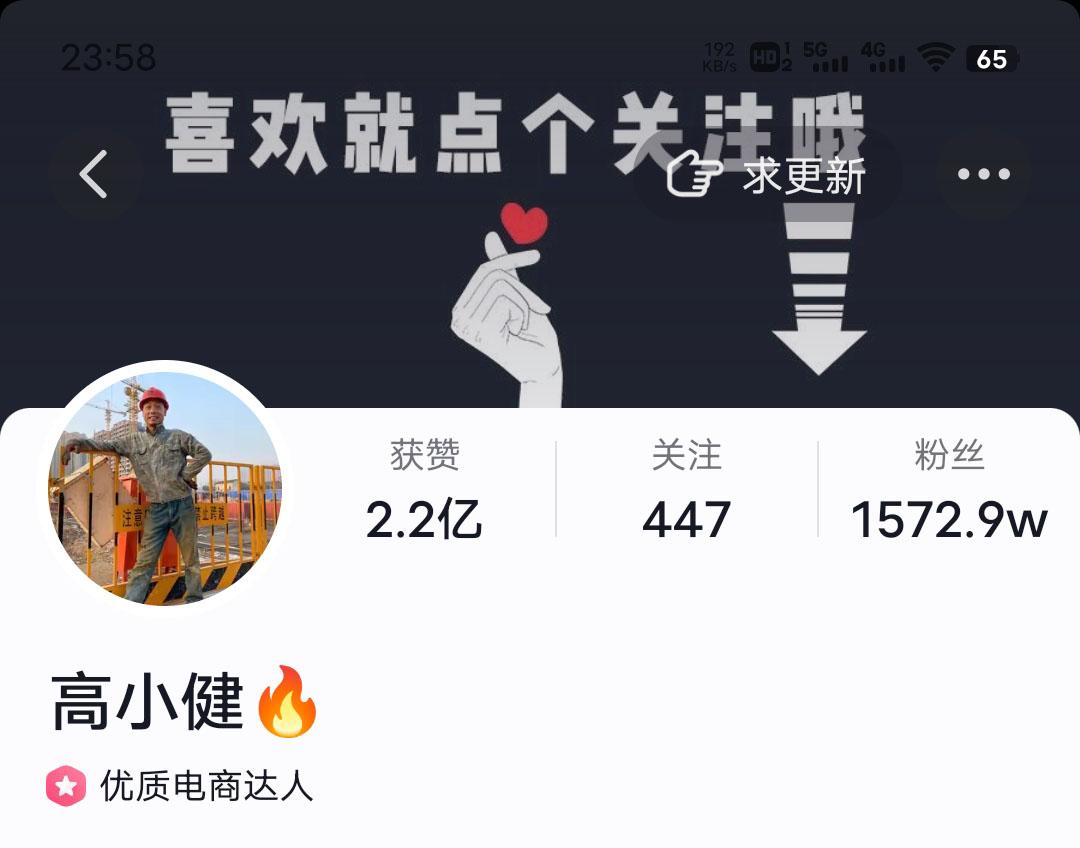 拔得新一轮衡阳网红头筹者,是拥有1500多万粉丝的高小健。