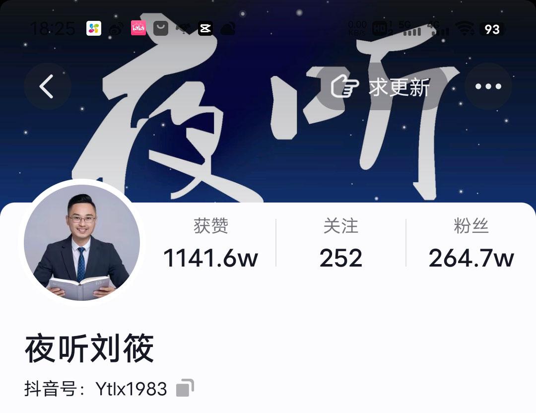 抖音上的“夜听刘筱”,可以看作是公众号《夜听》的一种跨平台外延和拓展,其精心设计的背景、帅气的造型和辨识度高的声音,一如既往地保持了原有的风格属性,同时新加入了个人IP元素。