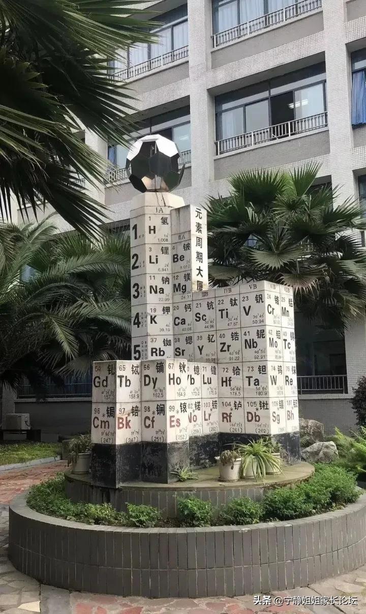这是元素周期大厦,川大附中的地标性建筑。设计灵感来自于元素周期表,上世纪60年代德国化学家送给四川大学,当时只是一个纸质的模型。四川大学又送给川大附中,这就成了学校的标志。