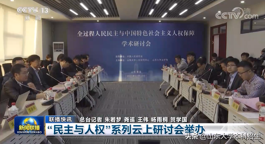 据央视报道,“民主与人权”系列云上研讨会分别在湖南长沙、陕西西安、山东青岛(山东大学青岛校区)和北京举行。会议采取线上线下结合的方式,来自人权研究领域的专家学者就全过程人民民主的法治基础和人权原理展开探讨。