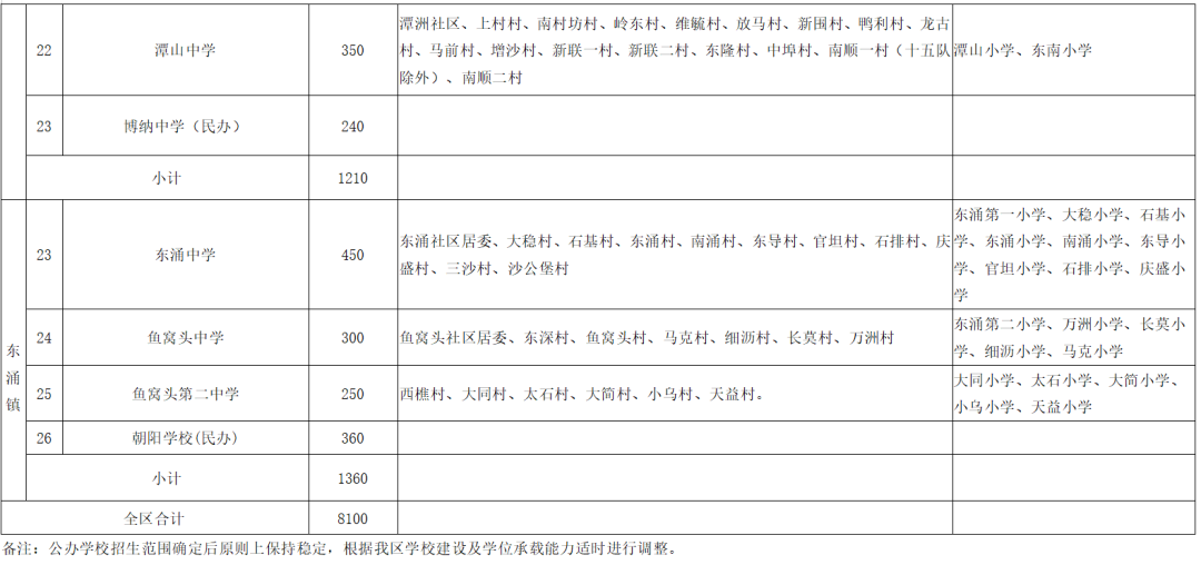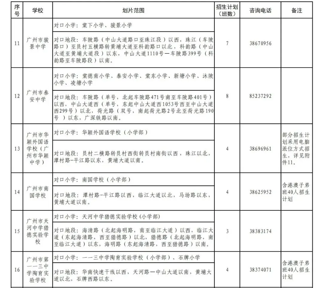 城区初中学校采取多校划片、定点对口+电脑派位的方式进行招生,城区的九年一贯制学校在确定定点对口后,将剩余学位的30%在本校毕业生内进行电脑派位,报名范围为本校穗籍毕业生。已录取的不再参加后续批次城区电脑派位。