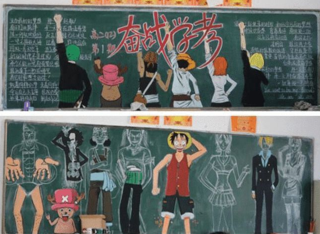 比如“我命由我不由天”的哪吒和敖丙,还有海贼王、犬夜叉等等,从这些黑板报中都足以看出同学们的画画功底,也难怪会让人拍手叫绝。