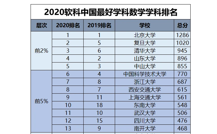 2020年高校“数学学科”排名出炉,榜首实至名归