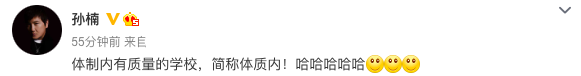 大概是因为太过于激动,有网友指出孙楠打错了字,把“体制内”写成了“体质内”。随后孙楠解释“体质内”的意思是体制内有质量的学校。