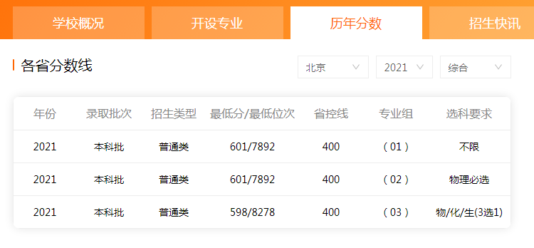 比如2021年,暨南大学在辽宁省的物理类录取分数线是603,历史类是599,北京是598-601,湖南是589-619,所以说,学生如果想要考入暨南大学,高考成绩不能低于600分,否则很难被录取。