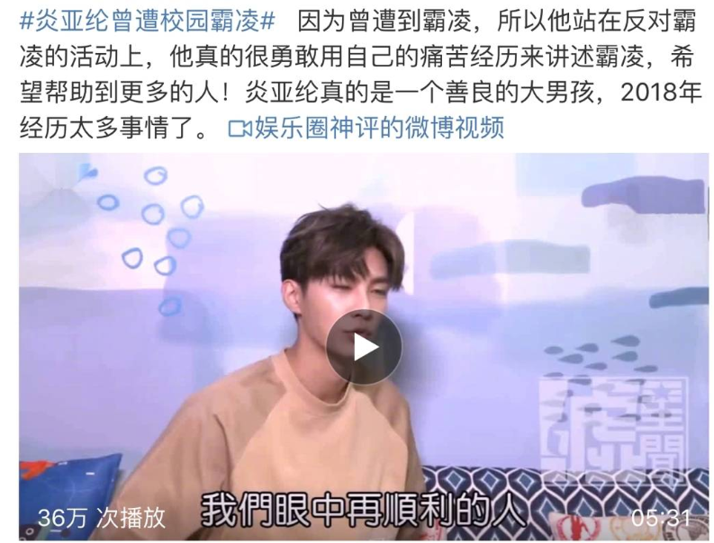 不过,炎亚纶直言对遭受的一切没有怨恨了,而自己会投身到反对校园霸凌的活动中,帮助更多的人免受困扰。