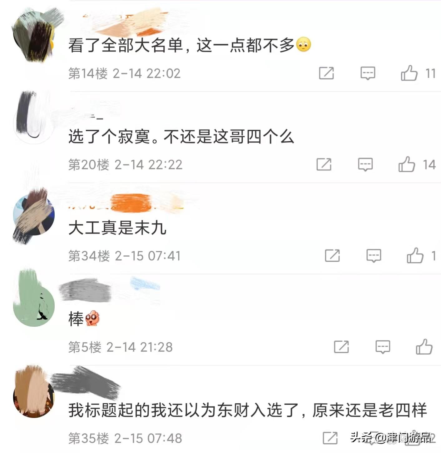 于是很多网友都评论说,选了个寂寞,不还是这四个嘛;看了全部名单,这一点都不多。还是老四样。