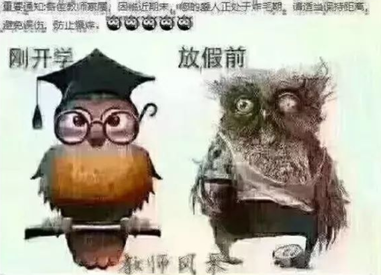 刚刚开学的老师就像是图中的这个精致的猫头鹰,带着眼镜,一脸端庄正经的样子,可是在放假前,老师一般都会被期末考试的复习阶段折磨的不成人样,变得一团糟。