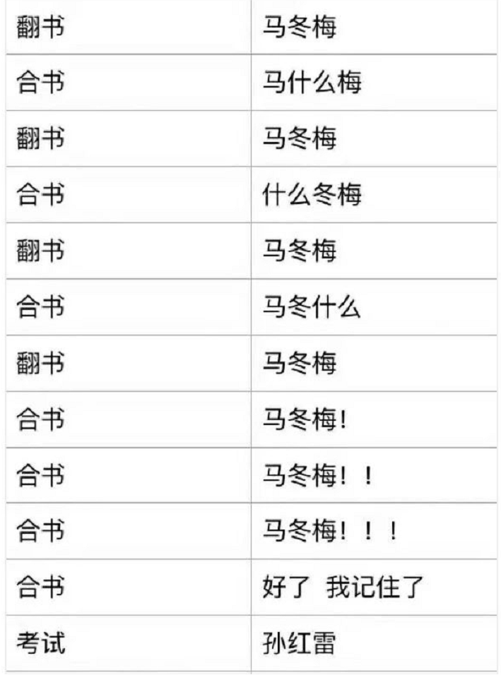 据说学生考试之前完全是这样的状态,翻开书的时候认识了这三个字,叫做马冬梅,合上书之后立马就变成了马什么梅。然后再翻书才能想起来原来是马冬梅,再合上书却又忘了。