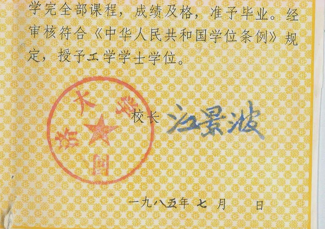 (江景波校长签字的同济大学毕业证书