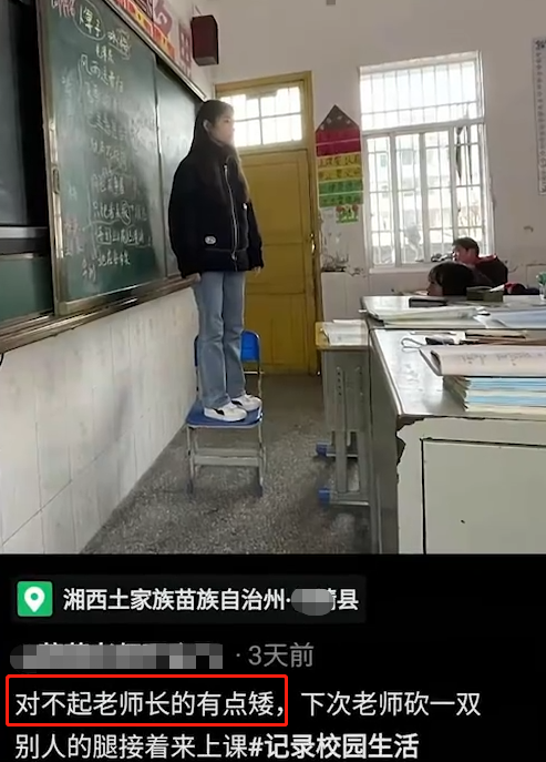 随着网络的便利,很多老师都喜欢记录下来和学生们的日常,特别是一些偏远地区的老师,更希望用这种方式让大家看到学生们风采,这位老师就把记录下来的内容发到了网上,还自我调侃道:对不起,老师有点矮。
