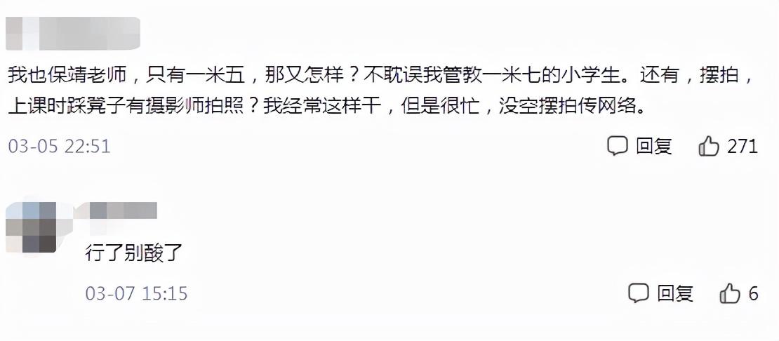 谁知这位女老师公开身高后,评论区却有很多不好听的声音,有人质疑她不好好上课却拍视频作秀,还有人对她的身高进行攻击,认为不到一米六的身高不适合当老师,更有难听的话批评这位老师太丢人了,赶紧辞职吧,别影响学生。