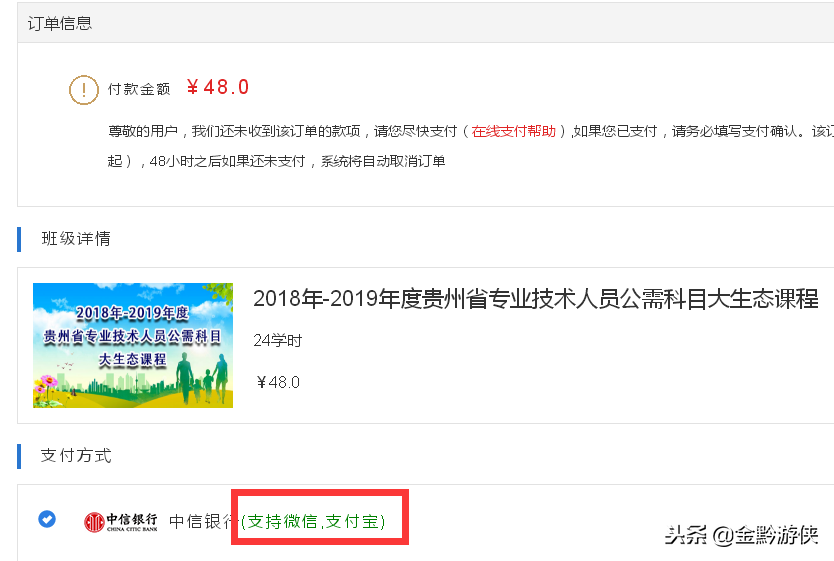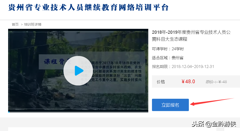 2018年、2019年我省公需科目的学习以自学的方式进行,学习人员登录“贵州省专业技术人员继续教育网络培训平台”(http://gzzj.ghlearning.com/),通过网络在线学习完成24学时的课程学习后进行考试。登录平台后先进行注册、缴费后才能进行学习、测试,测试合格者方可打印合格证,获得“大生态”公需科目24学时。(合格证不用交人社部门盖章验印,评审部门可通过扫描二维码验证)。特别提醒:如需辅导请关注后私信。