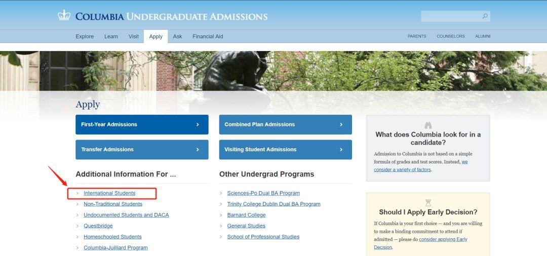 进入Apply界面后,通常我们自己申请,都是选择国际学生入学,可点击进去详细查看一些申请要求。