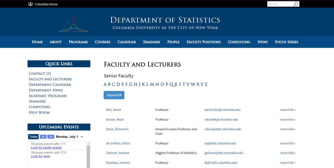 下面我们便以哥伦比亚大学统计学为例,教你如何查找国外大学官方网站的有用信息。(目前基本上世界各大名校的官方网站均可以直接登录)