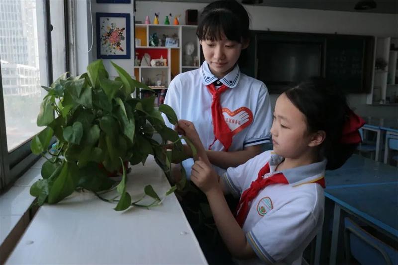 毕业生们带领低年级的小志愿者们一起劳动:到图书室整理图书,到体育器材室擦拭、摆放体育器材,为花坛除草,为绿植浇水……用劳动传递爱,传递责任。劳动结束,毕业生们把志愿者标签贴在低年级小志愿者的胸前,文明实践,志愿服务,责任担当,薪火相传。