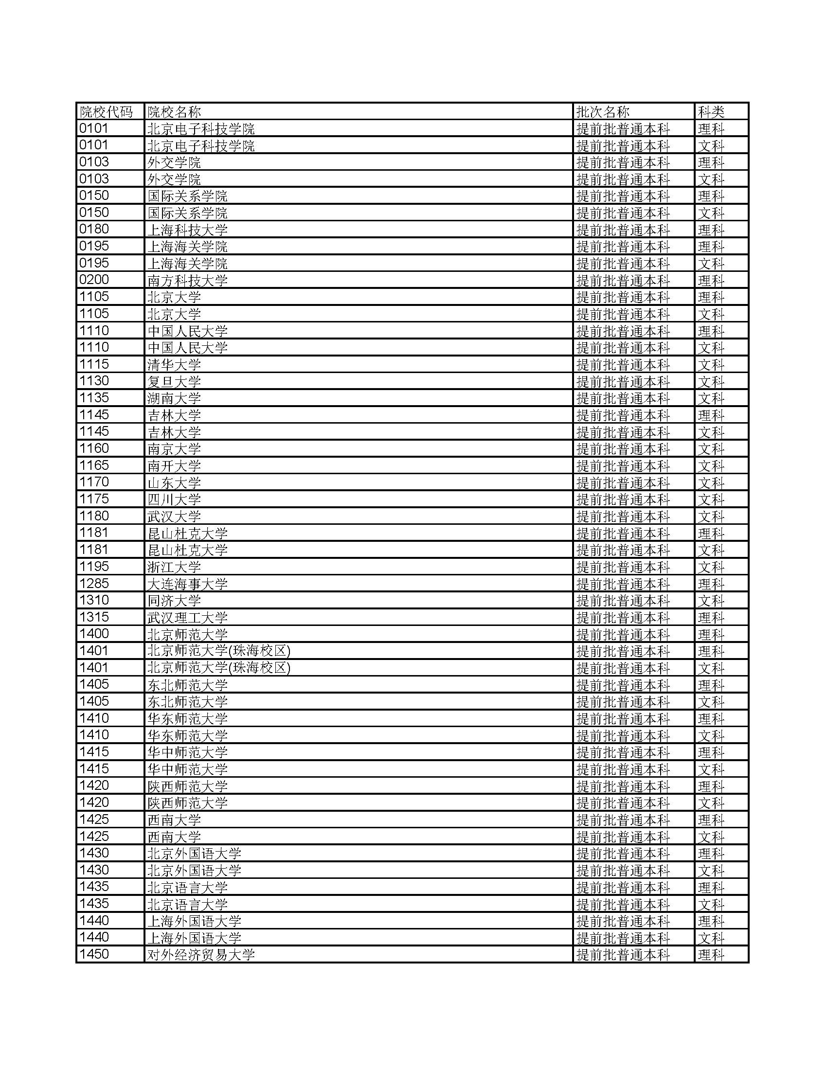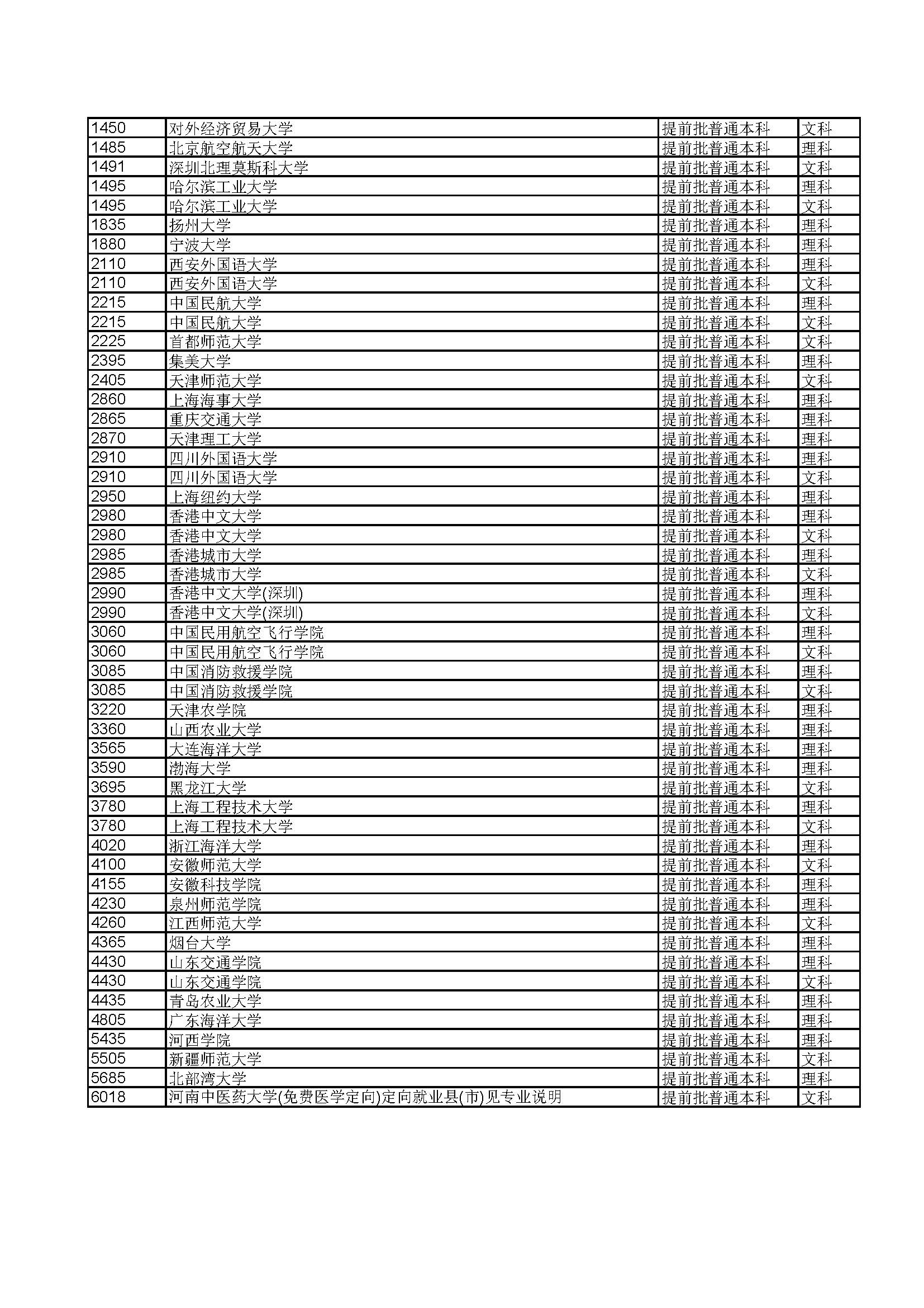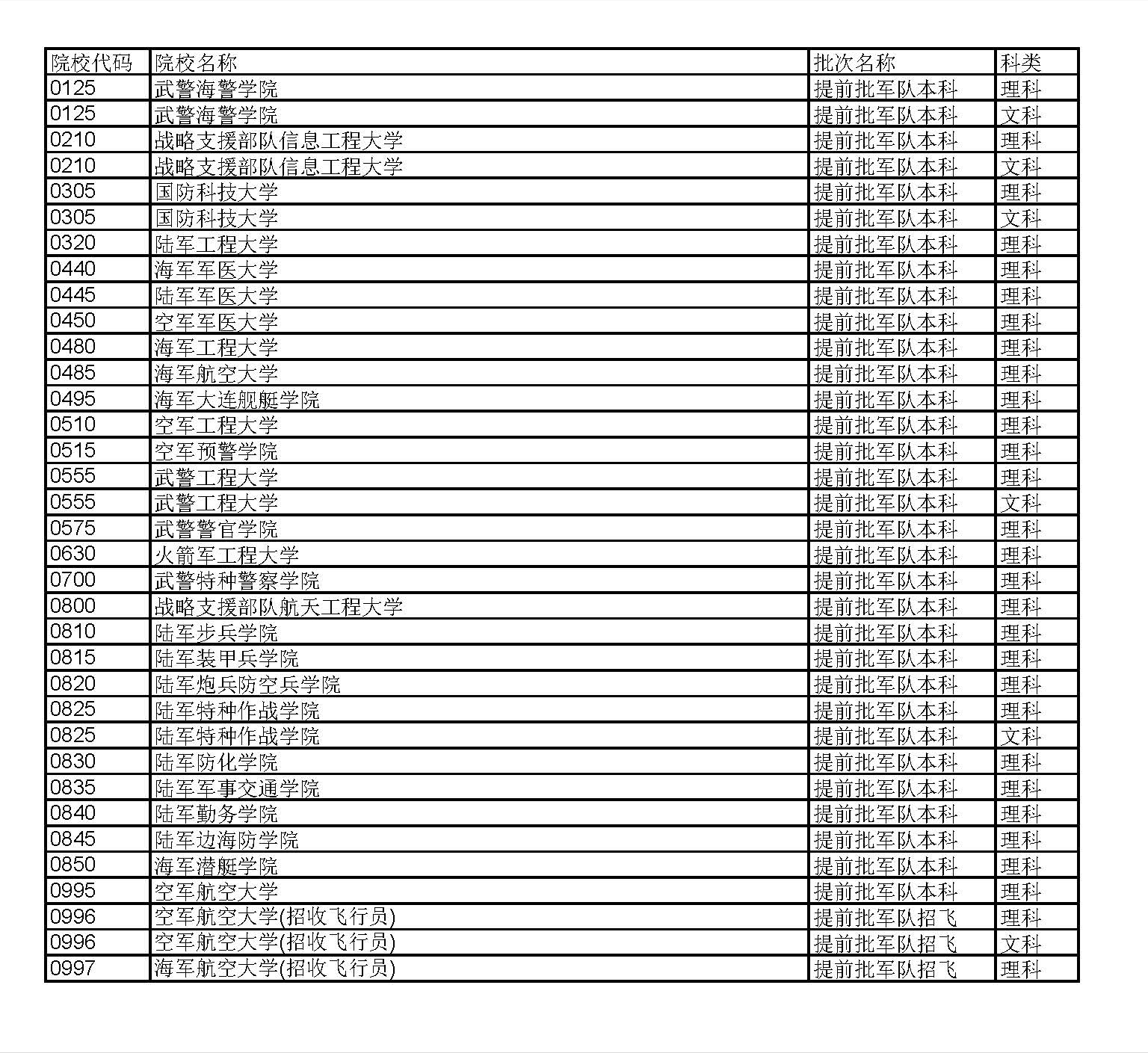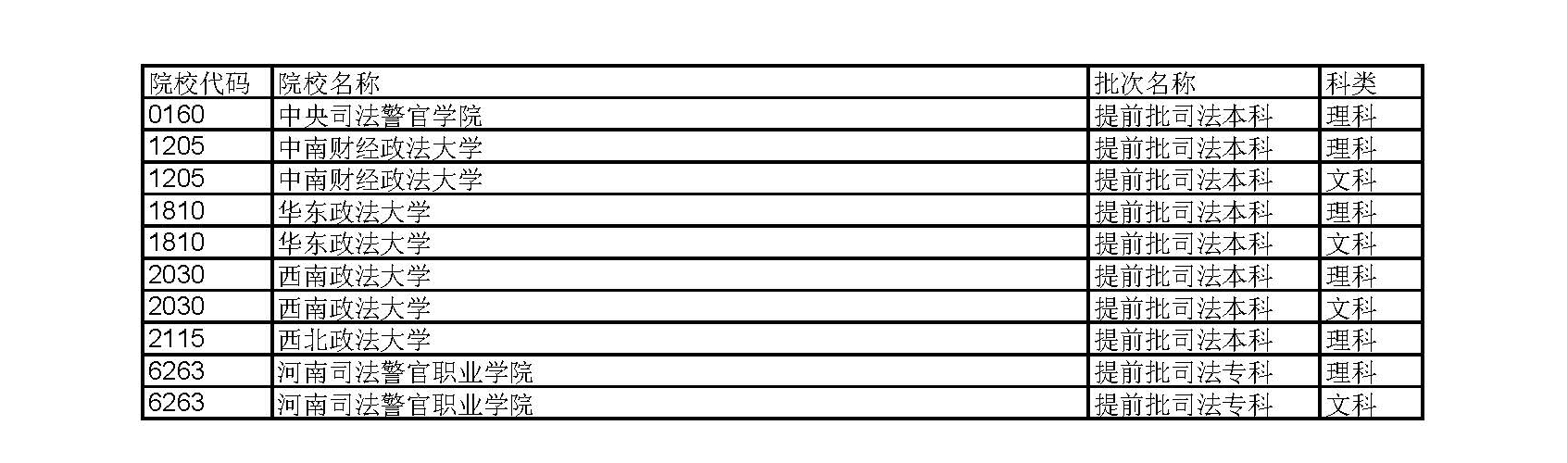 本科提前批(军事、公安、司法、其他)