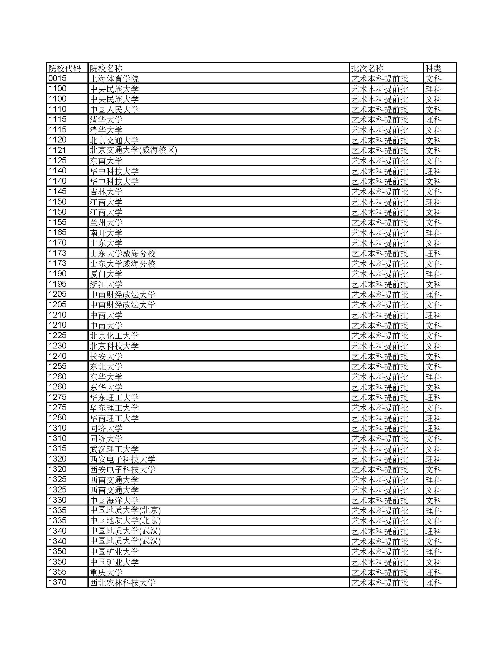 艺术本科提前批