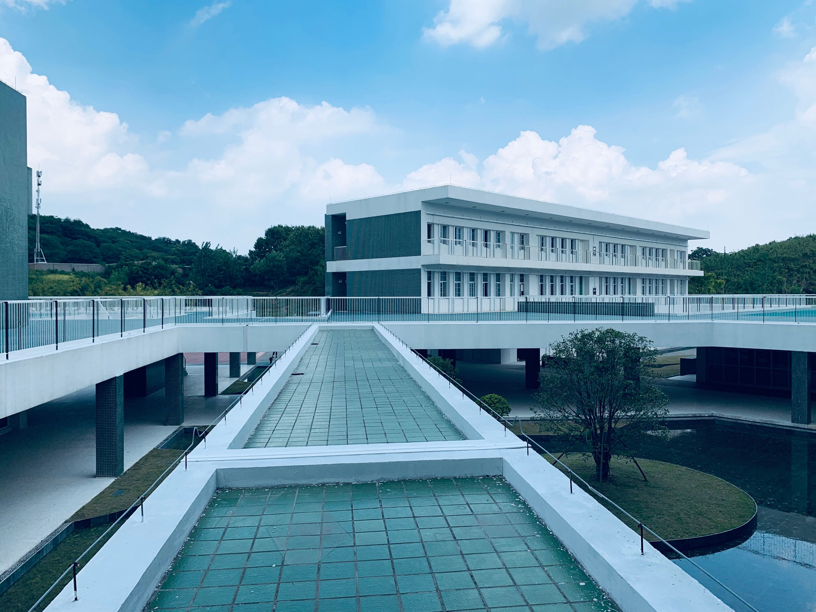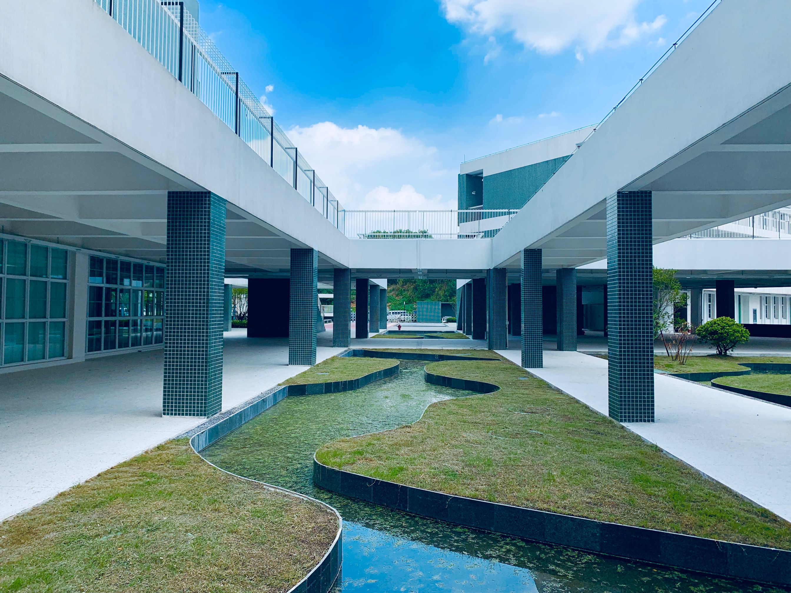 学校建筑空间连贯,设计统一,学校主体色调是理性的蓝色和智慧的灰色,给人一种置身于自然的美好感觉,彰显文艺范。