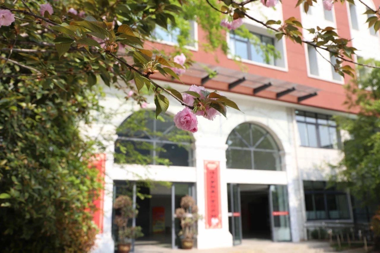 学校教学楼外墙红白相间色调,代表着热烈和纯洁,门窗方型和拱顶相间,体现了独特的审美风格。教学楼主大厅两层楼高,巨大的大理石背景墙上有校名和校训,高雅大气。
